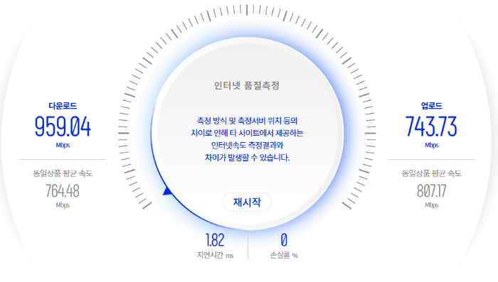 다운로드 속도가 굉장히 잘나온다. 업로드도 나쁘지 않다.